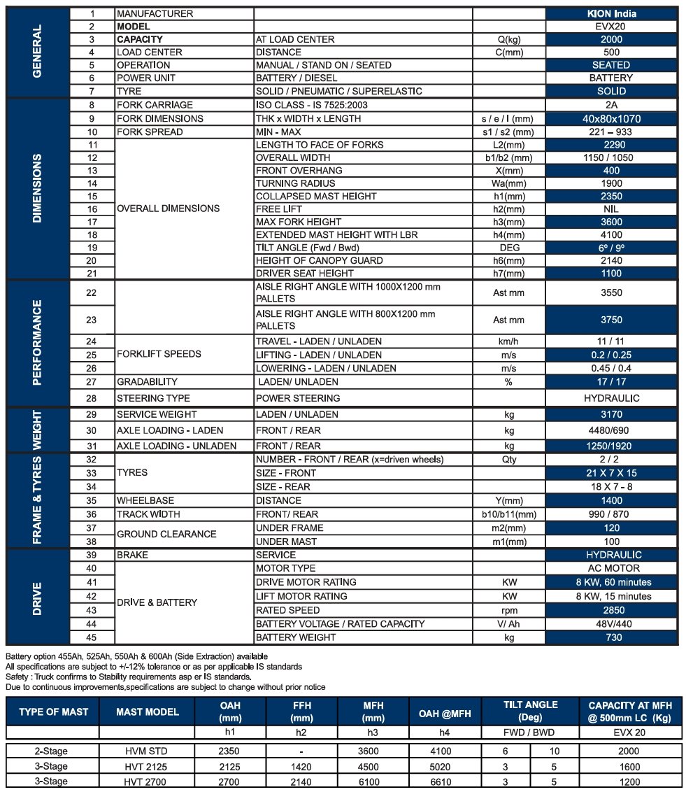 OM EVX 20 – 2 Ton Electric AC Forklift