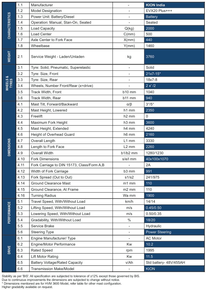 OM EVX 20 PLUS – 2 Ton Electric Forklift