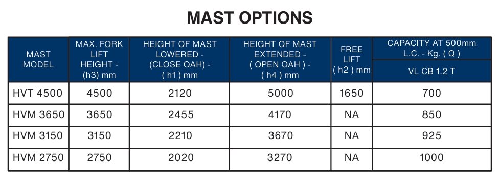 OM VL CB 12 – 1.2 Ton Counterbalance Electric Stacker (Mast Options Available)