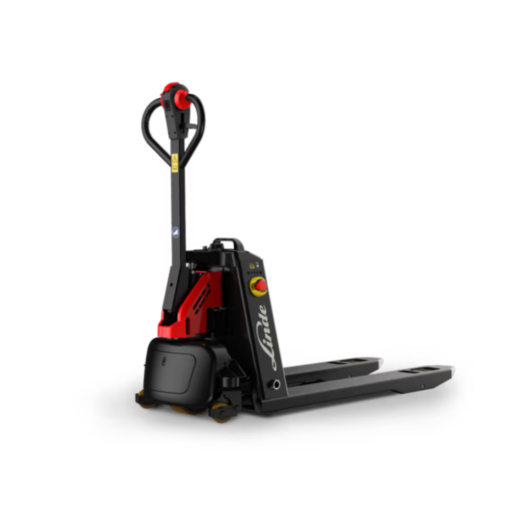 The Linde T20 AP is a 2.0-ton stand-on electric pallet truck engineered for high-speed, long-distance pallet transport in warehouses and